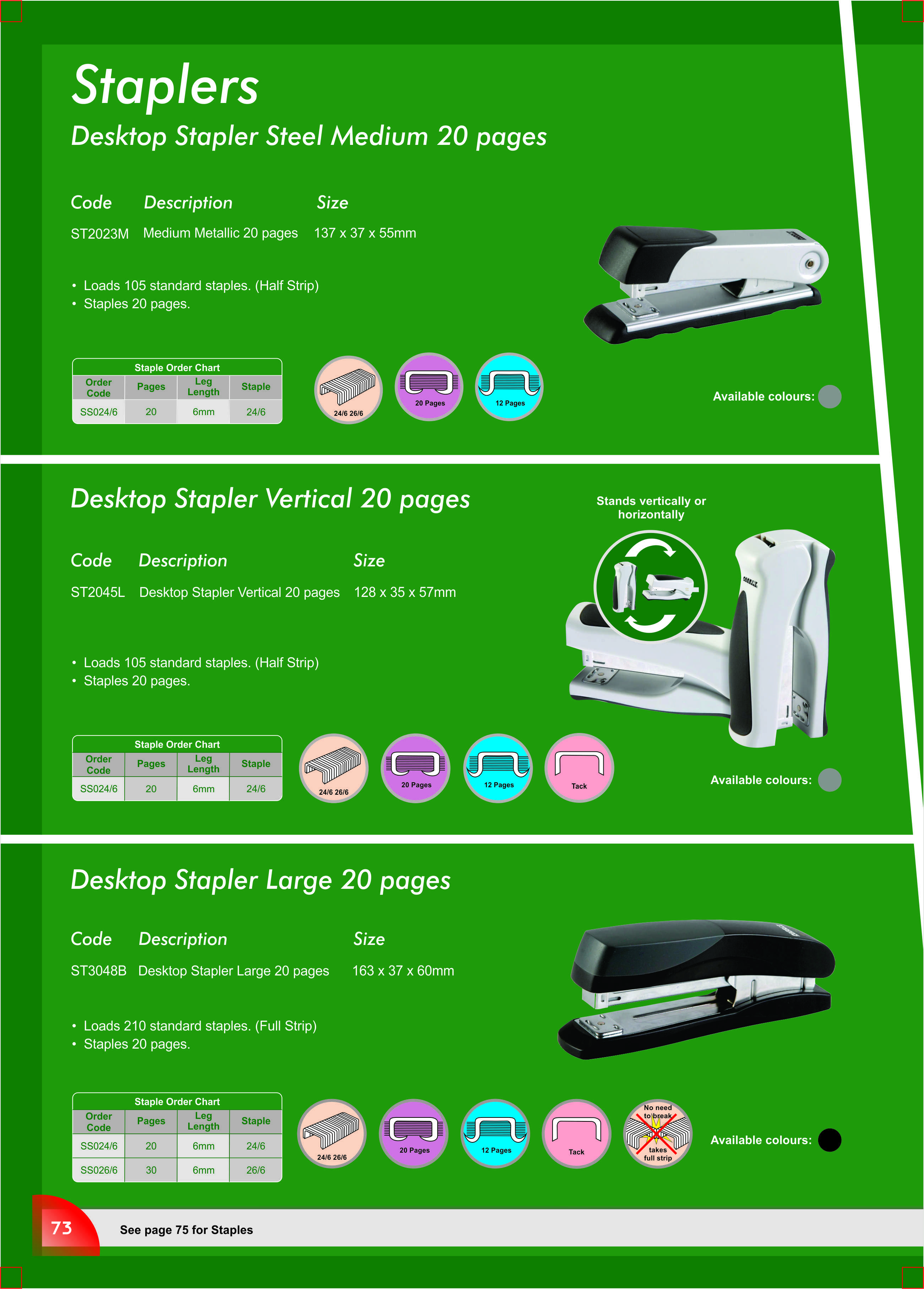 Loads 210 standard staples. Staples 20 pages. Can also be used for tacking. For office and home use. Durable and high quality.